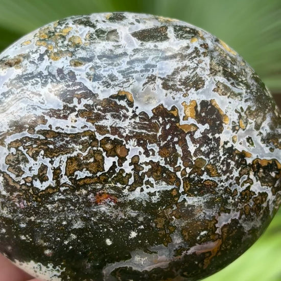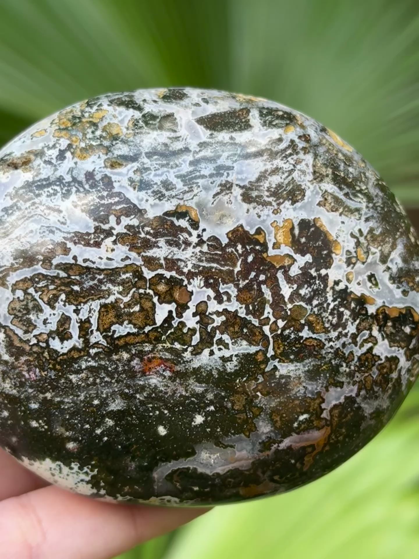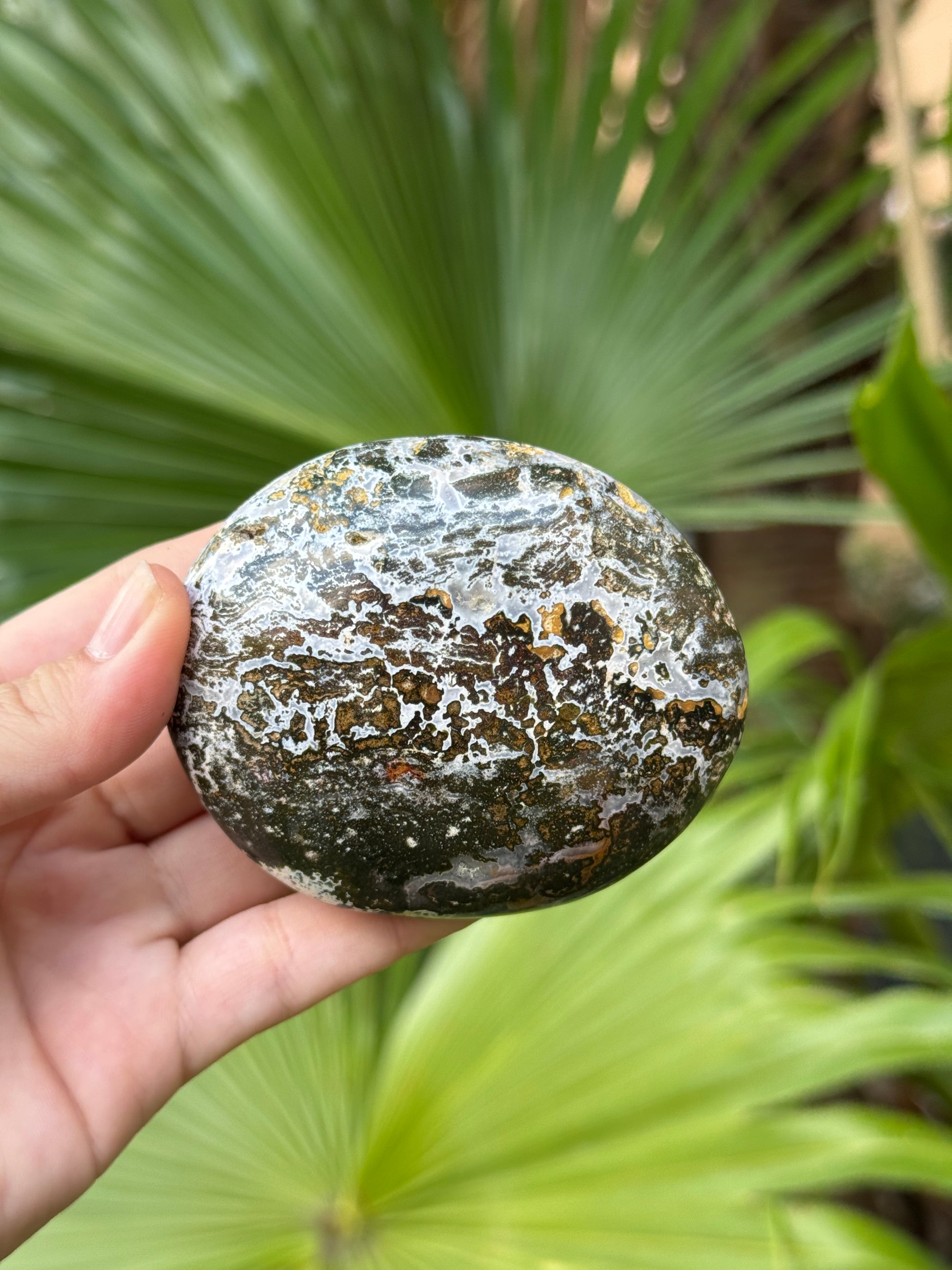 ocean jasper is distinct for its orb like patterns and vibrant colors, reflecting joy, flow, and cyclical healing. unlike other jaspers, it carries a soothing, watery energy that nurtures emotional release, promotes optimism, and encourages present moment awareness.