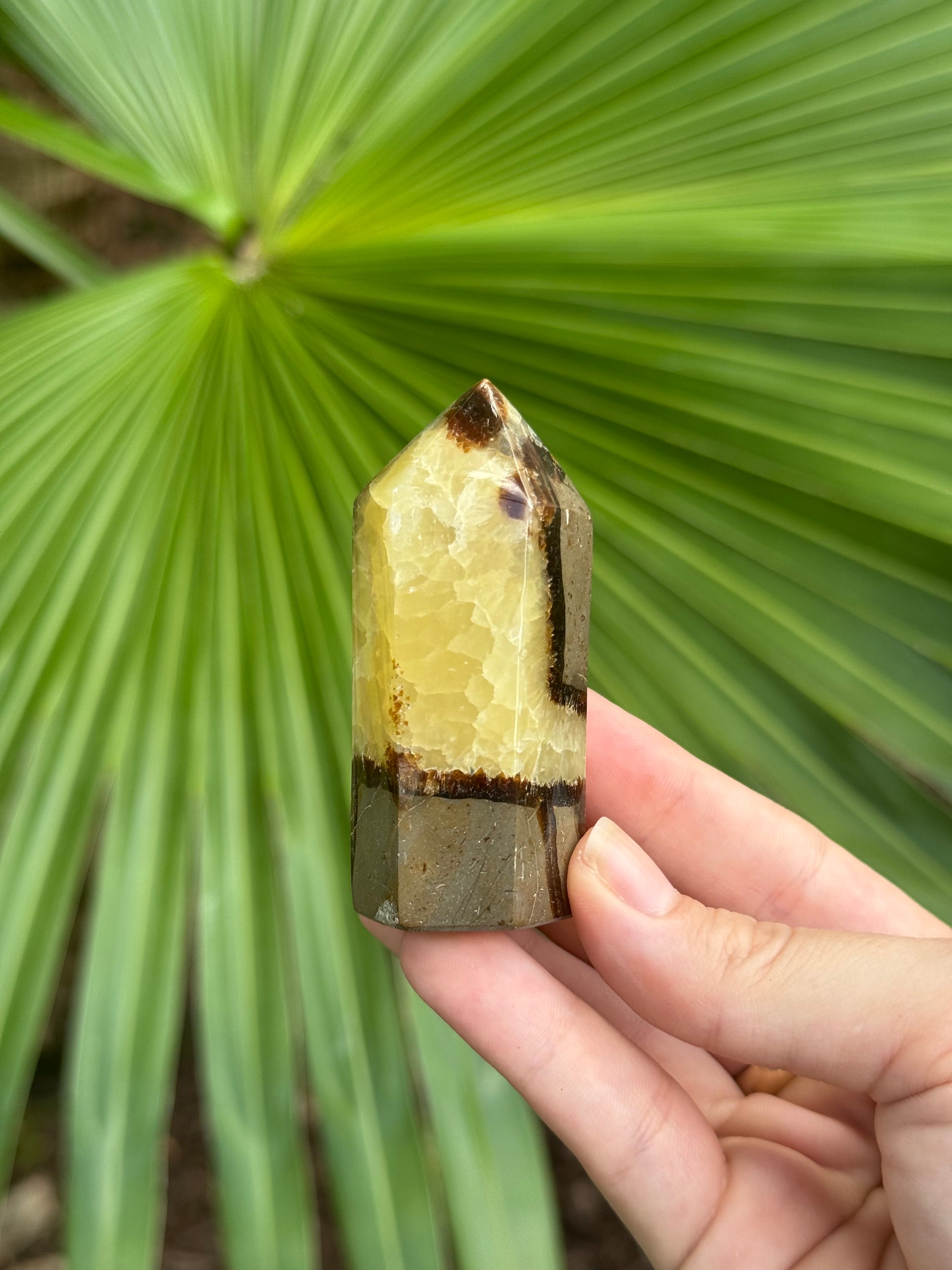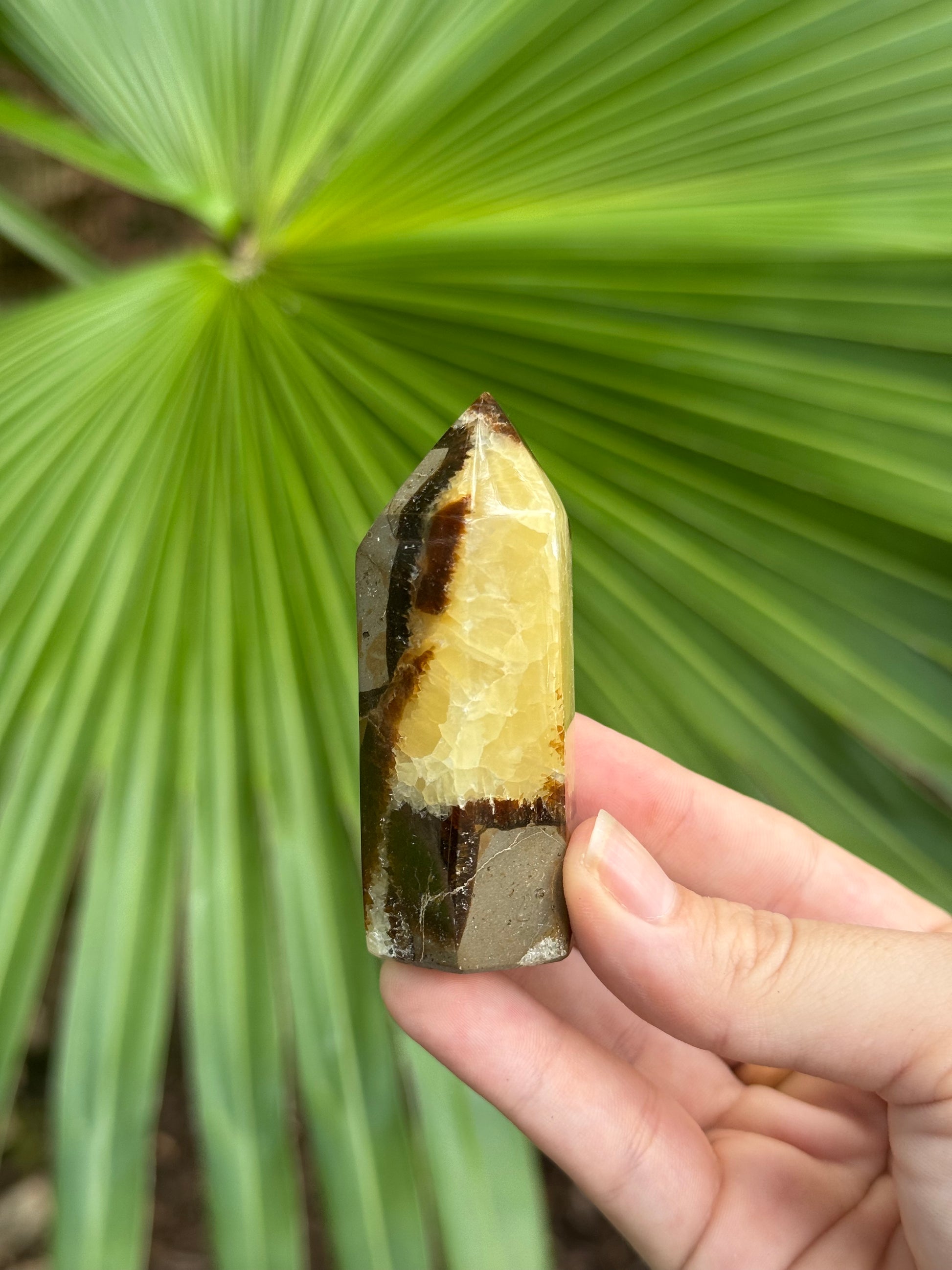 septarian is unique for its blend of grounding minerals like aragonite, calcite, and limestone. it harmonizes earth energy with emotional healing, fostering confidence, communication, and deep inner stability. its cracked patterning symbolizes transformation and wholeness.